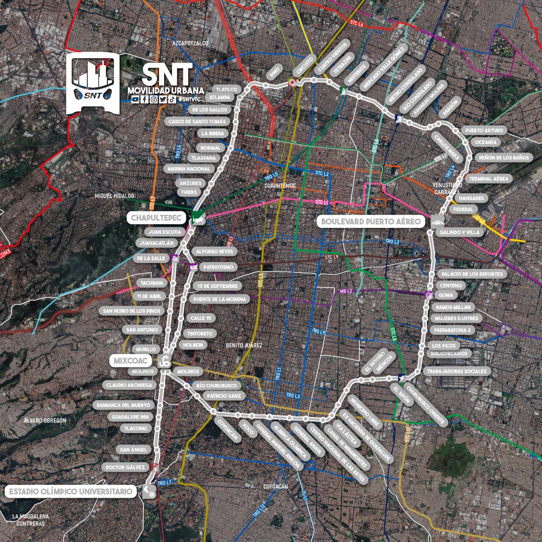 El proyecto contempla la construcción de estaciones en diez alcaldías: Gustavo A. Madero, Azcapotzalco, Miguel Hidalgo, Cuauhtémoc, Venustiano Carranza, Álvaro Obregón, Benito Juárez, Iztacalco, Iztapalapa y Coyoacán.